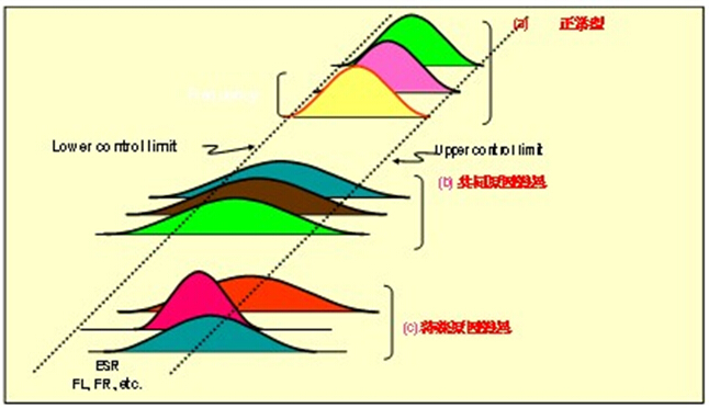 如果頻率不穩(wěn)定,偏移的幅度上百ppm或同時伴有C0偏小現(xiàn)象,應考慮膠點是否松動.對于一條相對成熟的生產(chǎn)線來說,產(chǎn)品在常溫下的頻率穩(wěn)定性一般不會出現(xiàn)問題,比較常見的是產(chǎn)品的一致性(散差),尤其是高頻的小公差產(chǎn)品一致性往往不如人意.一致性考慮是多個產(chǎn)品的頻率公差,在測試系統(tǒng)中,觀察FL的正態(tài)分布圖可以很直觀的了解產(chǎn)品的一致,也可以使用儀器測試系統(tǒng)中的CPK計算功能,通過CPK來衡量產(chǎn)品的一致性.