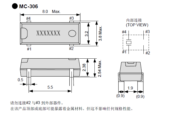 愛普生晶振,MC-306晶體諧振器,32.768K貼片晶體,"MC-306 32.7680K-E0:PURE SN",貼片表晶32.768K系列具有超小型,薄型,質地輕的表面貼片音叉型石英晶體諧振器,晶振產品本身具備優良的耐熱性,耐環境特性,在辦公自動化,家電領域,移動通信領域可發揮優良的電氣特性,符合無鉛標準,滿足無鉛焊接的回流溫度曲線要求,金屬外殼的石英晶振使得產品在封裝時能發揮比陶瓷晶振外殼更好的耐沖擊性能.