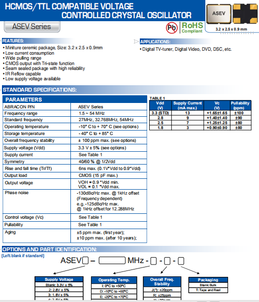ABRACON晶振,ASEV晶振,壓控晶體振蕩器.高精度超小型的表面貼片型石英晶體振蕩器,最適用于移動通信終端的基準時鐘等移動通信領域.比如智能手機,無線通信,衛星導航,平臺基站等較高端的數碼產品,晶振本身小型,薄型具備各類移動通信的基準時鐘源用頻率,貼片晶振具有優良的電氣特性,耐環境性能適用于移動通信領域,滿足無鉛焊接的高溫回流溫度曲線要求.