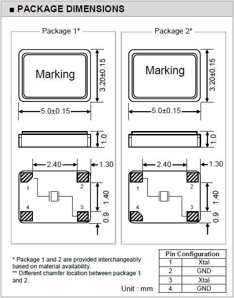 | 激勵功率 | DL | 1.0μW Max. | 推薦:100μW ~ 300μW |