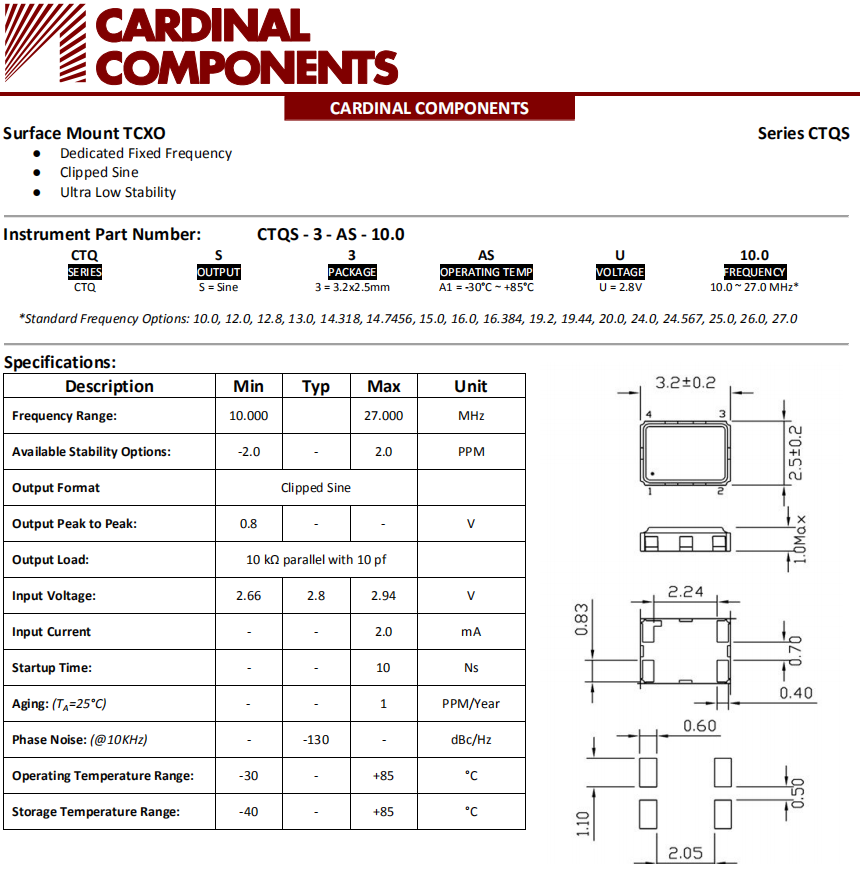 Cardinal晶振,CTQS晶振,溫度補償晶振.貼片式石英晶體振蕩器,低電壓啟動功率,并且有多種電壓供選擇,比如有1.8V,2.5V,3.3V,3.8V,5V等,產(chǎn)品被廣泛應用于,平板筆記本,GPS系統(tǒng),光纖通道,千兆以太網(wǎng),串行ATA,串行連接SCSI,PCI-Express的SDH/SONET發(fā)射基站等領域.符合RoHS/無鉛.
