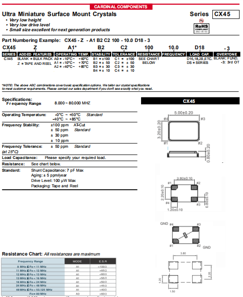 | Cardinal晶振 | 單位 | CX45晶振 | 石英晶振基本條件 |