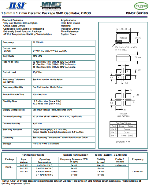 ILSI晶振,ISM37晶振,CMOS輸出振蕩器.普通貼片石英晶振外觀使用金屬材料封裝的,具有高穩(wěn)定性,高可靠性的石英晶體振蕩器,晶振外觀本身使用金屬封裝,充分的密封性能,可確保其高可靠性,采用編帶包裝,外包裝采用朔膠盤,可在自動(dòng)貼片機(jī)上對(duì)應(yīng)自動(dòng)貼裝等優(yōu)勢(shì)
