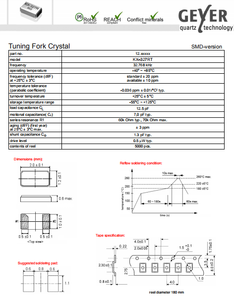 | Geyer晶振 | 單位 | KX-327RT晶振 | 石英晶振基本條件 |