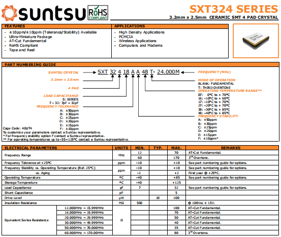 | suntsu晶振 | 單位 | SXT324晶振 | 石英晶振基本條件 |