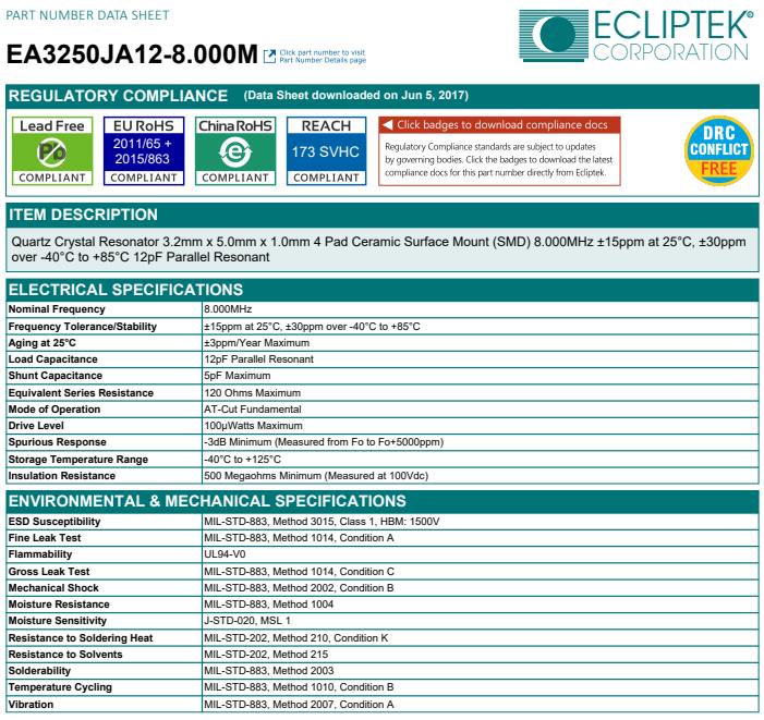 ECLIPTEK晶振將確保其振蕩器和石英晶體諧振器產(chǎn)品及相關(guān)設(shè)施滿足甚至超出國家的以及地方環(huán)保機(jī)構(gòu)的相關(guān)法規(guī)規(guī)定及其他要求,同時該公司盡可能的參與并協(xié)助政府機(jī)關(guān)和其他官方組織從事的環(huán)保活動. 在地方對各項(xiàng)設(shè)施的管理責(zé)任中,確保滿足方針的目標(biāo)指標(biāo),同時在各種經(jīng)營與生產(chǎn)活動中完全遵守并符合現(xiàn)行所有標(biāo)準(zhǔn)規(guī)范的要求.ECLIPTEK晶振,EA3250JA12-8.000M晶振,智能手機(jī)晶振.