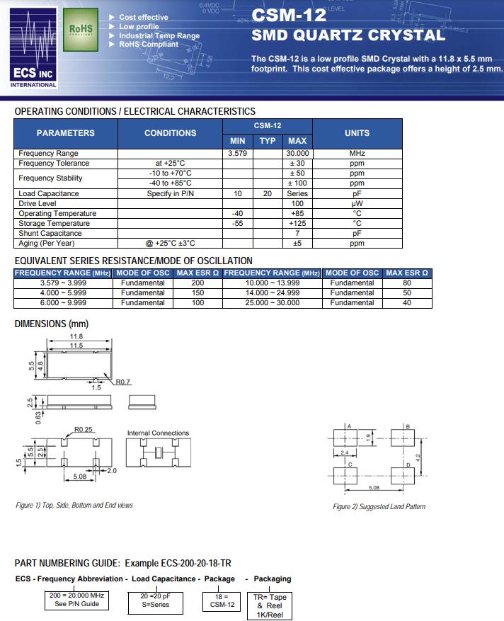 | ECS-200-20-18-TR | CSM-12 | 20MHz | ±30ppm | 20pF | -40°C ~ 85°C |