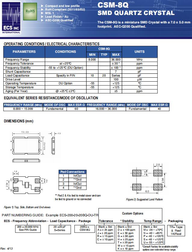 | ECS-130-18-20BQ-DS | CSM-8Q | 13MHz | ±30ppm | 18pF | -40°C ~ 125°C |