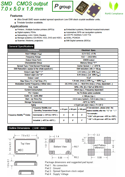 MERCURY晶振,MERCURY晶體振蕩器,HM572P有源晶體.石英晶體振蕩器在設(shè)計(jì)時(shí)就與各款型號(hào)IC匹配等相關(guān)技術(shù),使用IC與晶片設(shè)計(jì)匹配技術(shù):是高頻振蕩器研發(fā)及生產(chǎn)過程必須要解決的技術(shù)難題.在設(shè)計(jì)過程中除了要考慮石英晶體諧振器具有的電性外,還有石英晶體振蕩器的電極設(shè)計(jì)等有它的特殊性,必須考慮振蕩器的供應(yīng)電壓,起動(dòng)電壓和產(chǎn)品上升時(shí)間,下降時(shí)間等相關(guān)參數(shù).