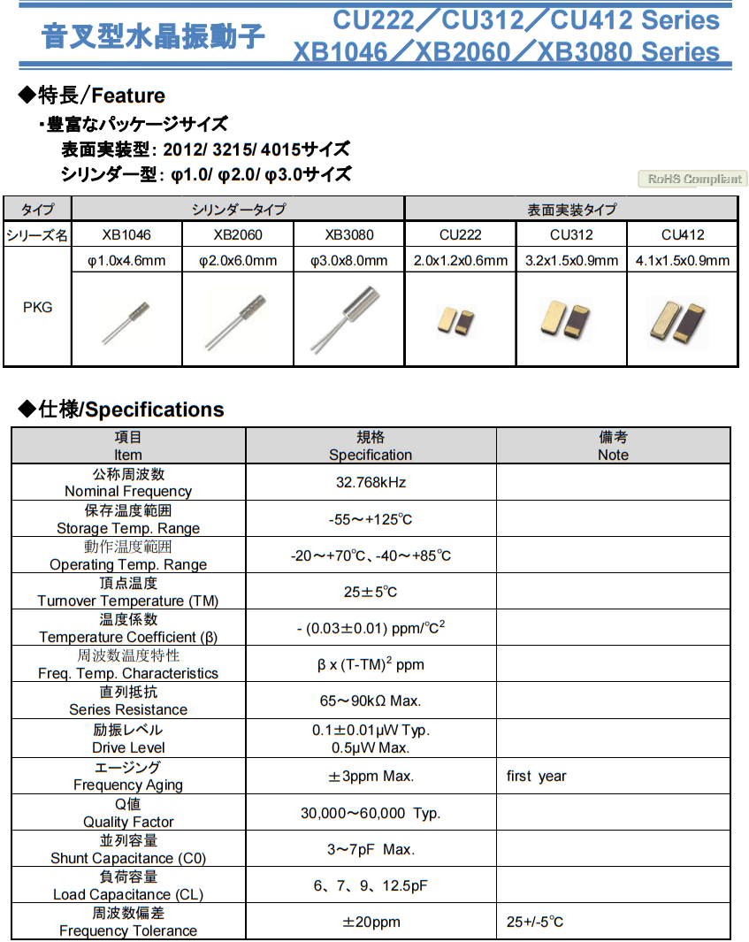 日本納卡晶振,無(wú)人機(jī)信號(hào)傳輸晶振,CU222 32.768K音叉晶體