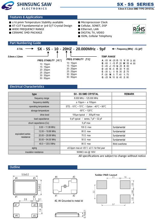 進(jìn)口晶體振蕩器的不正確安裝會(huì)導(dǎo)致故障以及崩潰,因此安裝時(shí),請(qǐng)檢查安裝方向是否正確.SHINSUNG晶振,SX-SS無(wú)源晶體,SX-SS-10-20HZ-16.000MHz-6pF晶振.