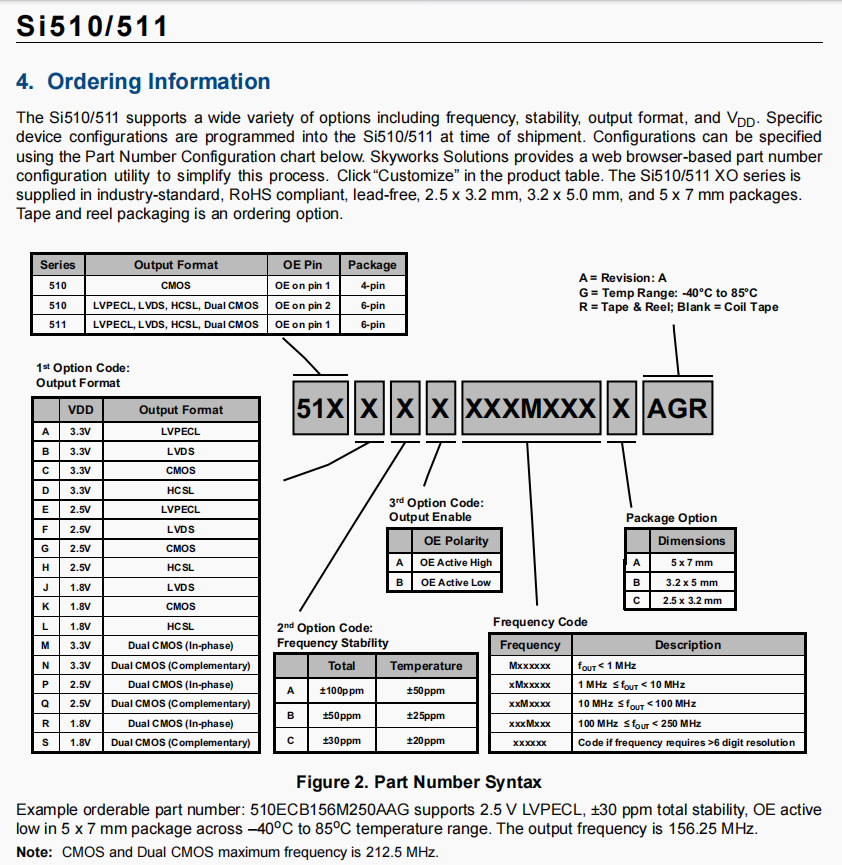 | 511ACA156M250CAG | Skyworks晶振 | Si511 | XO | 156.25 MHz | LVPECL | 3.3V | ±20ppm |