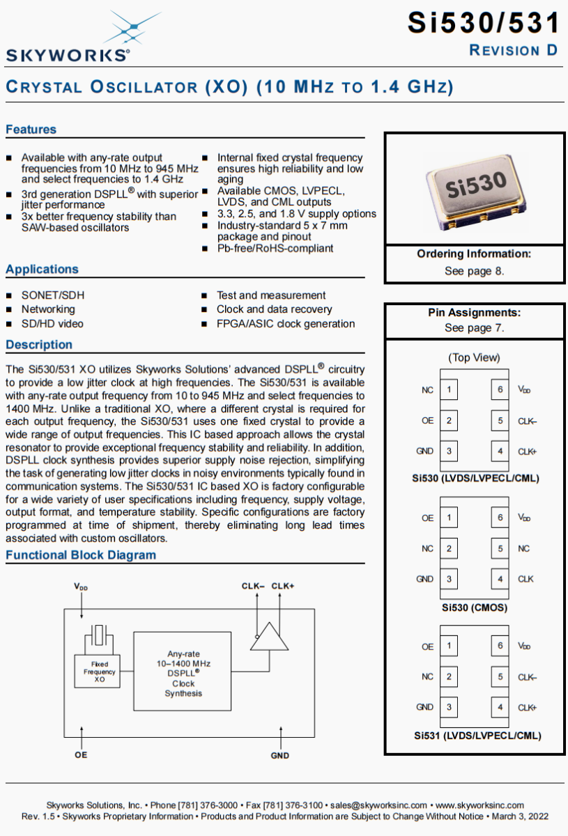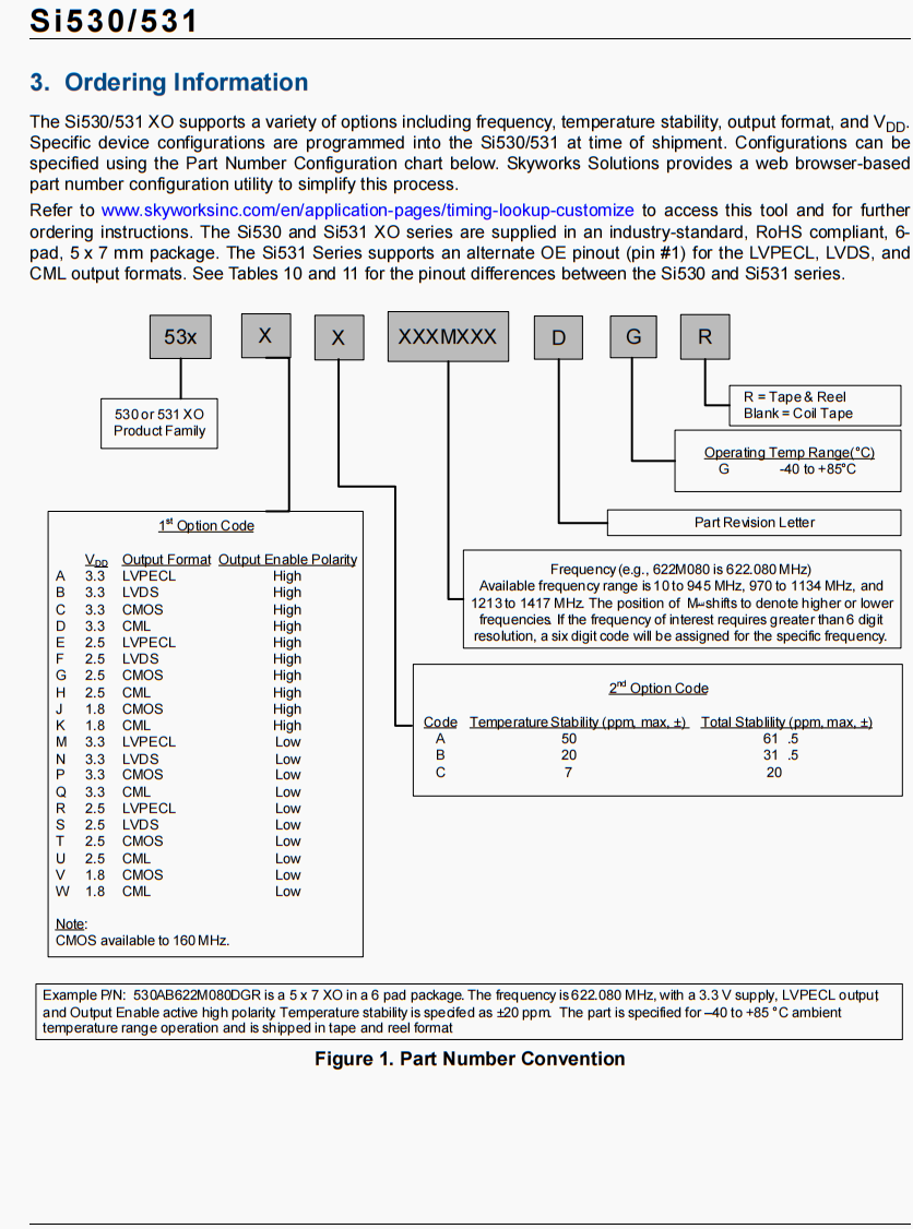 | 536AB125M000DGR | Skyworks晶振 | Si536 | XO | 125 MHz | LVPECL | 3.3V | ±20ppm |