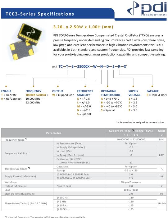 “wi2wi晶振公司繼續廣泛關注根據客戶需求開發新產品,并確保我們生產的每個類別都有全系列的貼片晶振產品。新型TCH系列TCXO擴展了我們目前的高穩定性,高沖擊和高振動,是航空電子,太空和軍事市場中高精度應用的理想選擇。TCH系列是我們高可靠性和高性能SMD晶振,TCXO系列的一個很好的補充。“Wi2Wi總裁兼首席執行官Zachariah Mathews說。TC03溫補振蕩器,wi2wi威爾威晶振,TCT3-26000X-WNB2RX晶振.