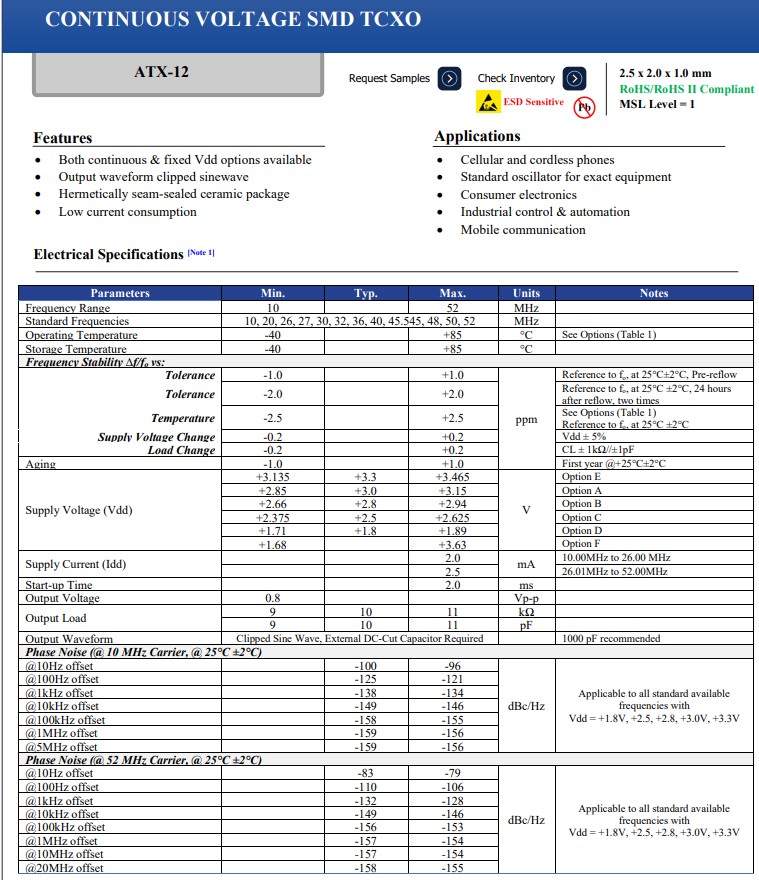 更多>>TCXO振蕩器ATX-12C-26.000MHz-F05-T3適合低功耗6G路由器應用