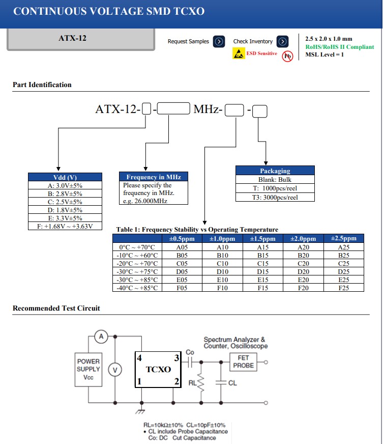 TCXO振蕩器ATX-12C-26.000MHz-F05-T3適合低功耗6G路由器應用
