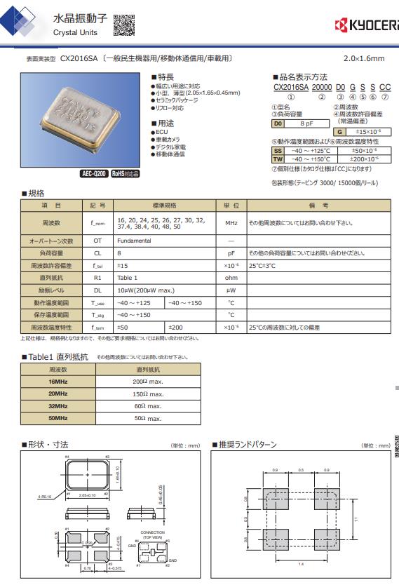 更多>>京瓷輕薄型的貼片晶振可滿足車載相機(jī)的需求CX2016SA20000D0GSSCC