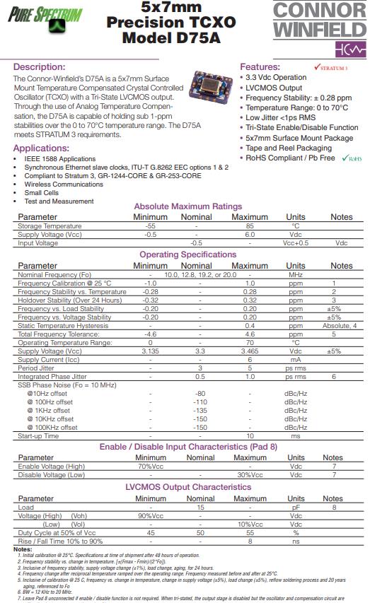| D75A-010.0M | Connor-Winfield溫補晶振 | D75A | 10MHz | 0°C ~ 70°C |