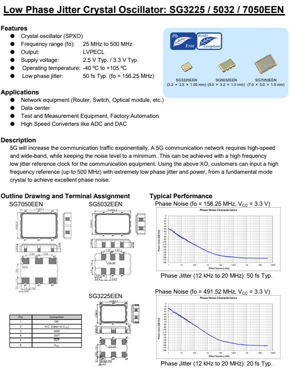 愛普生發布首款優質的LVPECL差分晶振X1G005221000200,5G將成倍增加通信流量。5G通信網絡要求高速還有寬頻帶,同時把噪音降到最低。這可以通過高頻率來實現用于通信設備的低抖動基準時鐘。使用上述XO,客戶可以輸入一個高頻率參考(高達500 MHz),具有極低的相位抖動和功率,從基本模式晶體實現優良的相位噪聲。