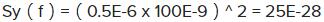 通過(guò)將頻譜密度Sy(f)乘以載波頻率平方,再除以偏移頻率平方,可以得到相位噪聲頻譜密度.在此示例中,將按以下方式計(jì)算100Hz偏移處的相位噪聲: