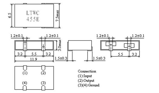陶瓷貼片晶振,LTWC455E,陶瓷諧振器,千赫子壓電陶瓷諧振器片狀型產品,一般電子產品用標準頻率公差型,利用康華爾獨創的封裝技術,實現了千赫頻率“陶瓷諧振器”.該系列非常適合用于微型遙控裝置和AV模塊中.可采用回流焊接,可使用自動貼片機高速自動貼裝焊接,被公司CRB系列低頻陶瓷濾波器系列已批量生產,常規型號長期被有現貨.以下是KHZ晶振產品系列特點:該系列產品可采用回流焊接,并且可以選擇插件以及貼片模式使用自動貼片機器焊接安裝.產品無需做調整即可用于線路振蕩電路.成熟的產品被廣泛應用到家用電器遙控產品,DVD,電視機等系列產品.