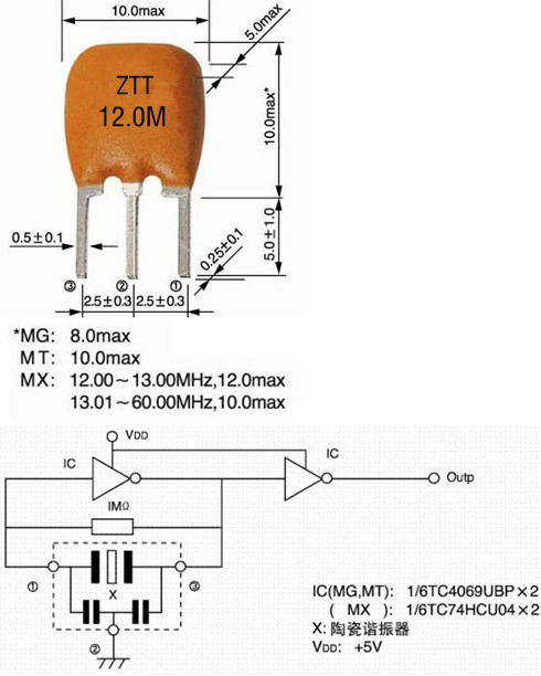 陶瓷晶振,ZTT12.0MHZ,壓電陶瓷諧振器,康華爾電子生產的陶瓷諧振器,ZTT系列是在原有的ZTA晶振內部添加了內置負載電容,引線腳于原來的二腳演變成三腳直插式,這樣一來減去了外部線路設計時可以省去電容部分,大大減少了線路空間,且可減少元器件的數量,增加穩定性,減小尺寸,為電路設計者們提供了非常的方便,并且外形尺寸也沒有太大的改變.此規格的頻率范圍在 2.0 MHz 至 60.00 MHz,頻率公差為 ±0.5%,±0.3%.陶瓷諧振器,是一種壓電元器件,類似于石英晶體,可以把電能轉換為機械能,也可以把機械能轉換為電能.具有對激勵信號頻率十分敏感的突出特點,當外加的交流電場的頻率和諧振器的諧振頻率發生共振時,電能和機械能的轉換會發生在諧振器的諧振頻率上.