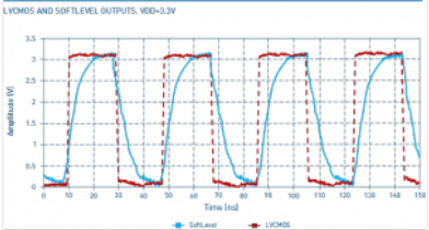 圖2:正常LVCMOS方波信號(紅線)與軟電平LVCMOS輸出信號(藍線)的側面輪廓