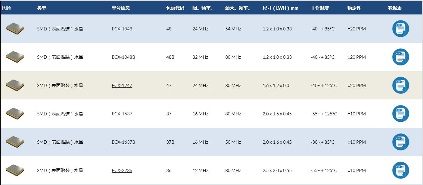 ECS貼片7050晶振無(wú)源系列原廠(chǎng)代碼表:
