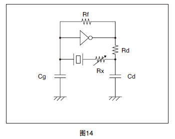 與晶振串聯連接上純電阻 Rx,確認振蕩的開始或結 束.緩慢地使 Rx 值逐漸變大 , 開始或結束振蕩時 的最大電阻 Rx 加上晶振的有效電阻 Re,就是該電 路的大概負性電阻的數值.