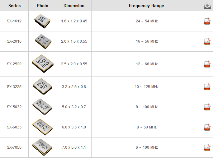 | 晶振目錄 | 希華貼片晶振型號SX-6035mm | |