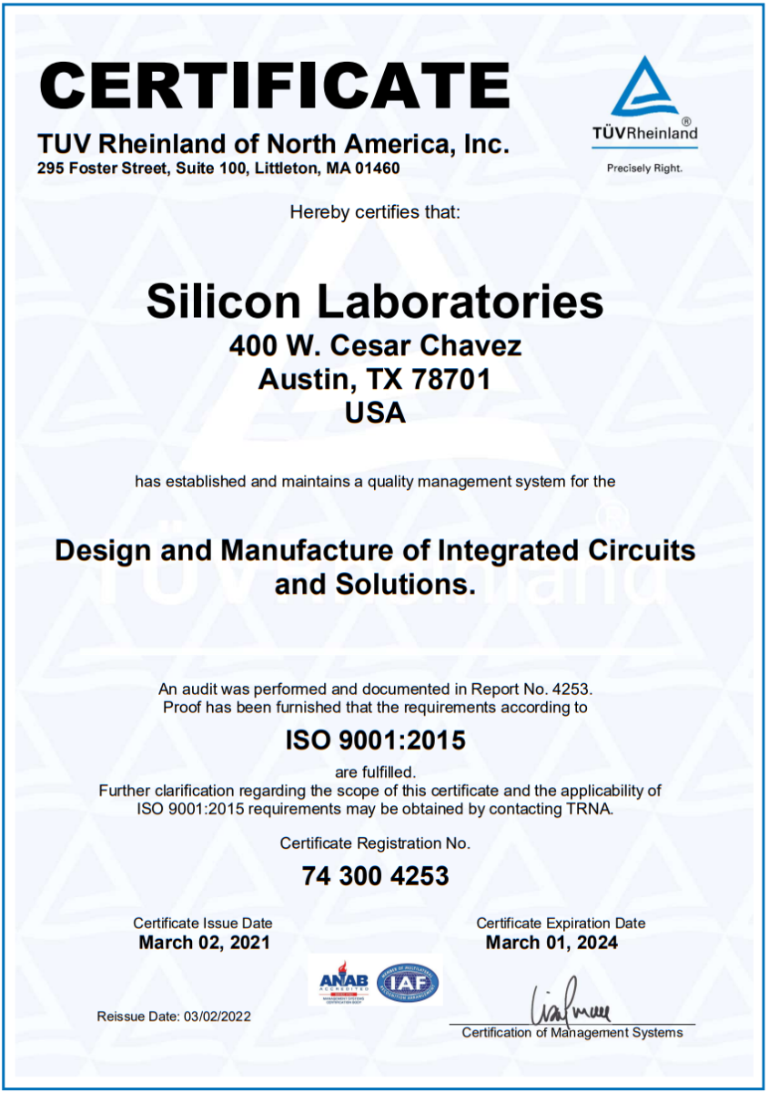 要求卓越的質(zhì)量的Silicon晶振通過ISO9001認(rèn)證標(biāo)準(zhǔn),可持續(xù)發(fā)展是Silicon晶振一切工作不可或缺的一部分,努力減少資源使用,減少生產(chǎn)過程對環(huán)境的影響,并提供符合環(huán)境法規(guī)和要求的產(chǎn)品。Silicon晶振要求卓越的質(zhì)量和環(huán)境管理體系,每個體系都分別通過了認(rèn)證ISO 9001:2015 認(rèn)證標(biāo)準(zhǔn)。Silicon Labs是EPA綠色電力合作伙伴,致力于在可用的情況下增加對可再生能源的使用。Silicon采用積極主動的計劃來減少辦公室用水量,并采取措施提高回收和電子處置選項的可用性,從而提高我們的轉(zhuǎn)化率。