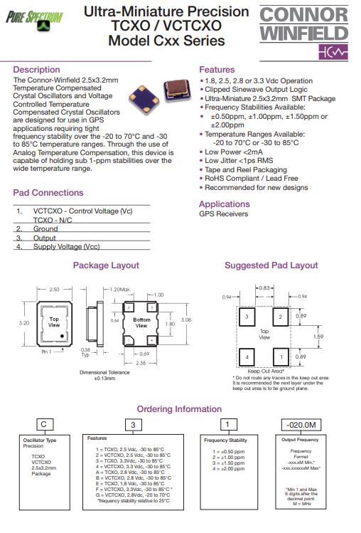 GPS接收器專用溫補(bǔ)晶體振蕩器C34-040.0M,康納·溫菲爾德是一家非常知名的元器件供應(yīng)商,致力于為廣泛應(yīng)用市場(chǎng)提供具有競(jìng)爭(zhēng)優(yōu)勢(shì)的產(chǎn)品,通過(guò)自身的努力,開(kāi)發(fā)一系列優(yōu)質(zhì)的有源晶振產(chǎn)品,并得到廣大用戶的認(rèn)可,編碼C34-040.0M,Connor-Winfield 3.2x2.5mm溫補(bǔ)晶體振蕩器和電壓控制溫度補(bǔ)償晶體振蕩器是為GPS設(shè)計(jì),需要緊密配合的應(yīng)用,頻率穩(wěn)定性在-20至70°C和-30至85°C的溫度范圍。通過(guò)使用模擬溫度補(bǔ)償,本裝置是能夠保持低于1ppm的穩(wěn)定性寬溫度范圍。產(chǎn)品主要應(yīng)用GPS接收器。