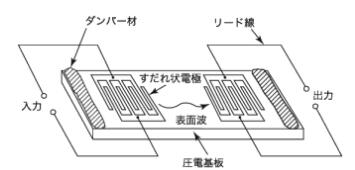 圖一 SAW濾波器的基本結(jié)構(gòu)(橫向型) 圖二 叉指式換能器的基本結(jié)構(gòu)(橫向型)